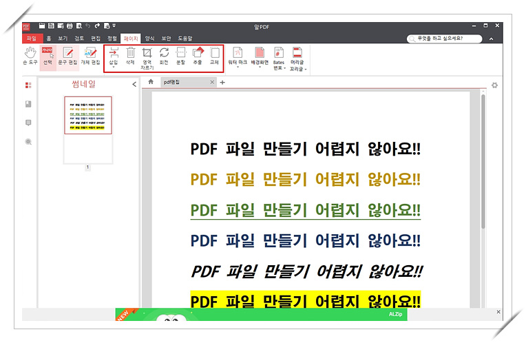 초보자도 쉽게 PDF파일을 생성해 합치고,나누는 기본은 물론 워터마크 삽입이나 이미 생성된 PDF의 텍스트 편집까지 알PDF하나면 모두 가능합니다.