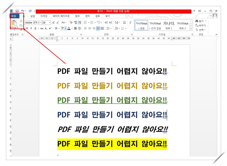 이미 다른 형태로 저장된 문서를 PDF문서로 변환해서 만들기