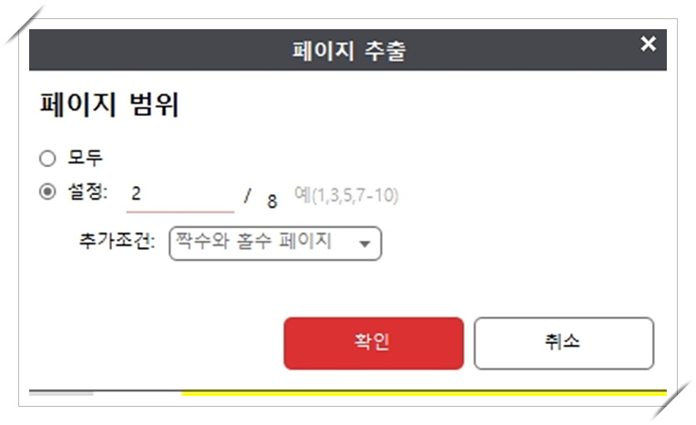 추출: 특정페이지만을 뽑아내어 새로운 PDF파일로 생성도 가능합니다.