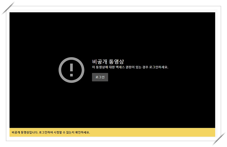 비공개 설정은 해당 영상의 URL을 알고 직접적으로 접근을 한다 하더라도 아래의 사진처럼 영상 접근이 거부됩니다.