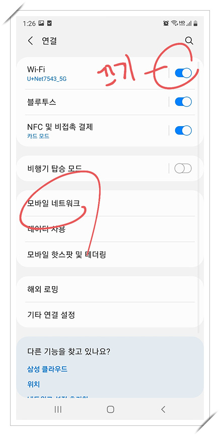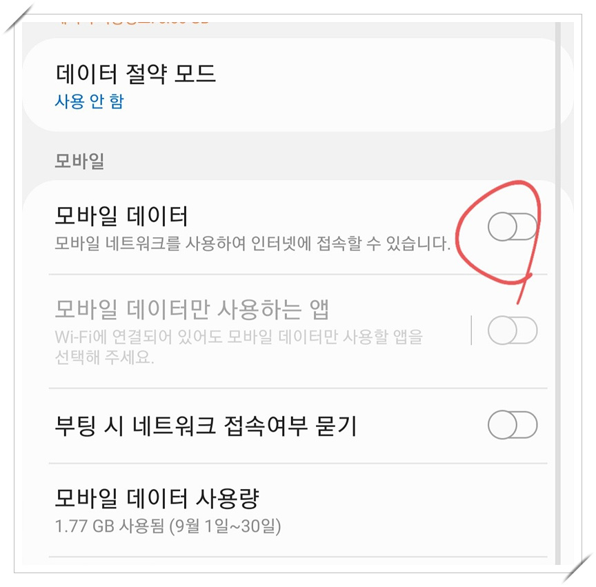 2. 와이파이기능과 데이터 설정을 차단하세요