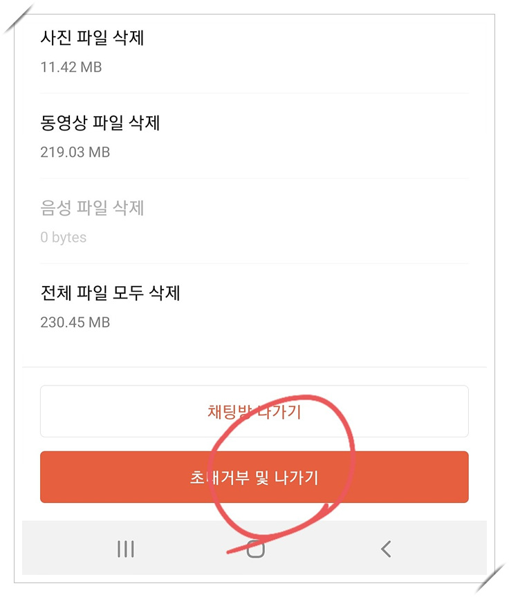 단톡방에서 나가기 할때 그냥 나가기버튼을 누르지 말고 설정창에서 초대거부 및 나가기를 꾹 눌러줘요.
