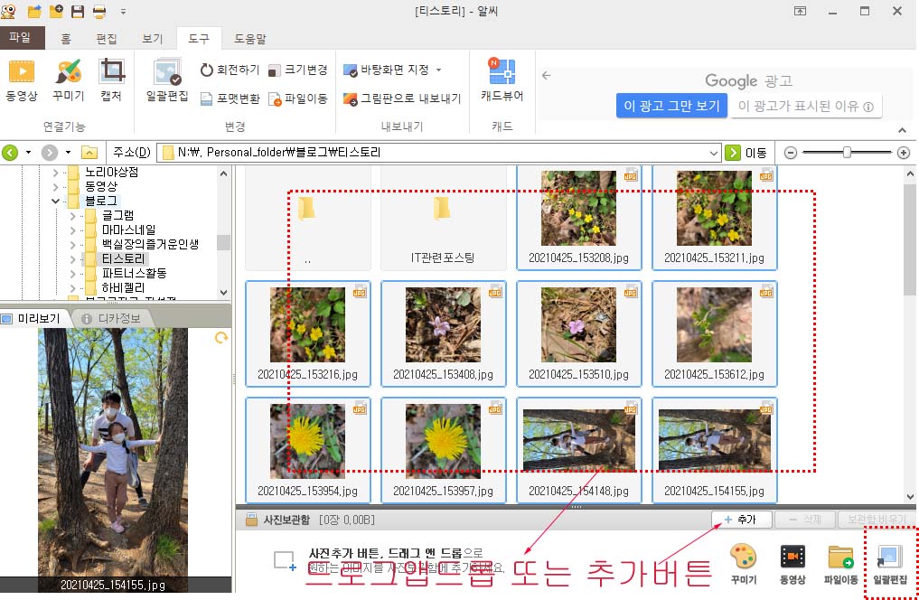 사진 한장만 편집하고 싶을경우는 >사진편집< 을 여러장의 편집을 원할때는 >일괄편집<을 선택하면 됩니다.