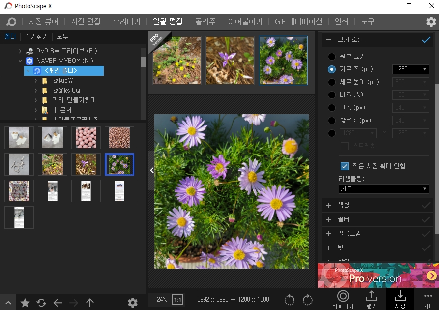 개인적으로 사진의 퀄리티가 많이 중요하지 않은 포스팅을 한다면 시간을 절약할 수 있는 강력한 프로그램이라고 생각합니다.