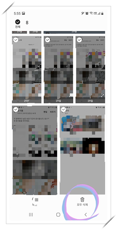 원하는 파일만 골라 지우거나 전체파일 모두 삭제로 지웁니다.