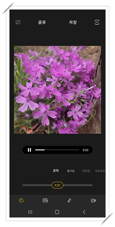 5. 모든 설정이 끝나면 상단의 저장버튼을 선택하면 사진들이 재생되는 동영상 앨범이 만들어집니다.