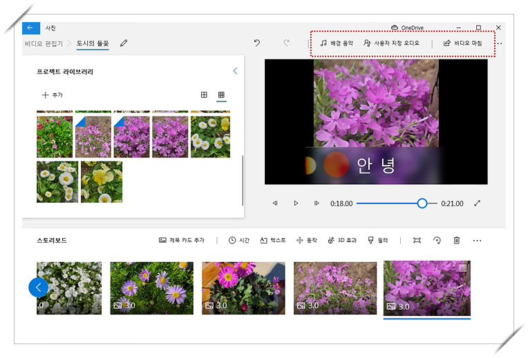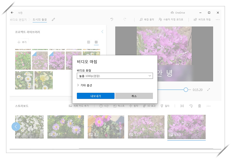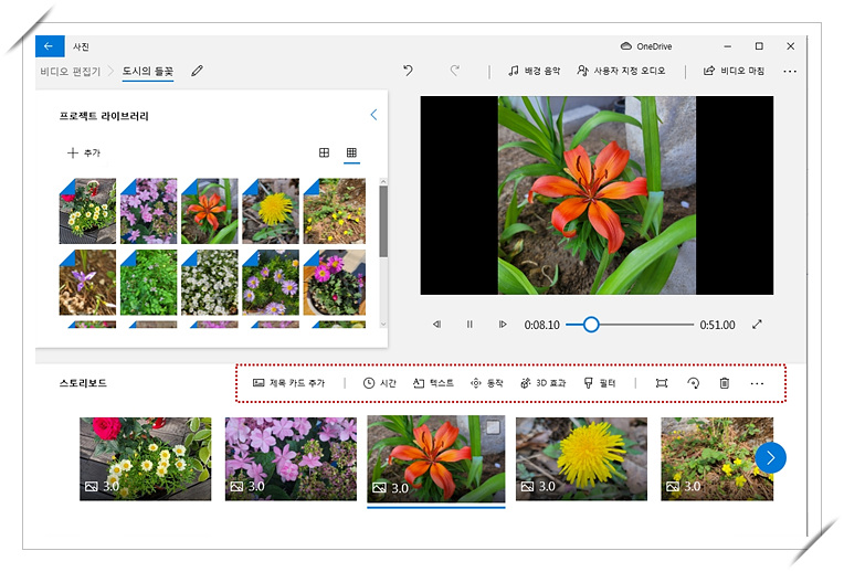 역시 별도의 복잡한 프로그램 설치없이 윈도우10부터 제공되는 사진 프로그램을 사용하면 근사한 동영상 사진을 만들 수 있습니다.