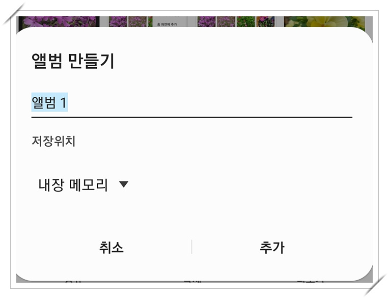 2. 생성할 앨범의 이름을 넣으면 선택된 사진들로 사진첩이 생성됩니다.