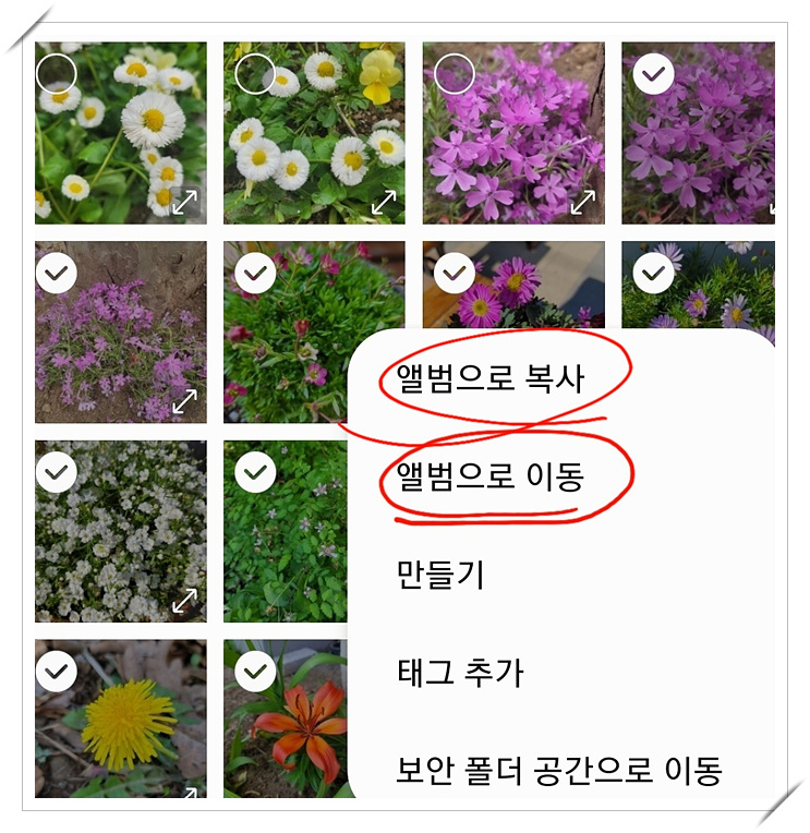 새로운 앨범생성은 화면 하단아래 더보기를 선택후 앨범으로 이동 또는 복사를 선택합니다.